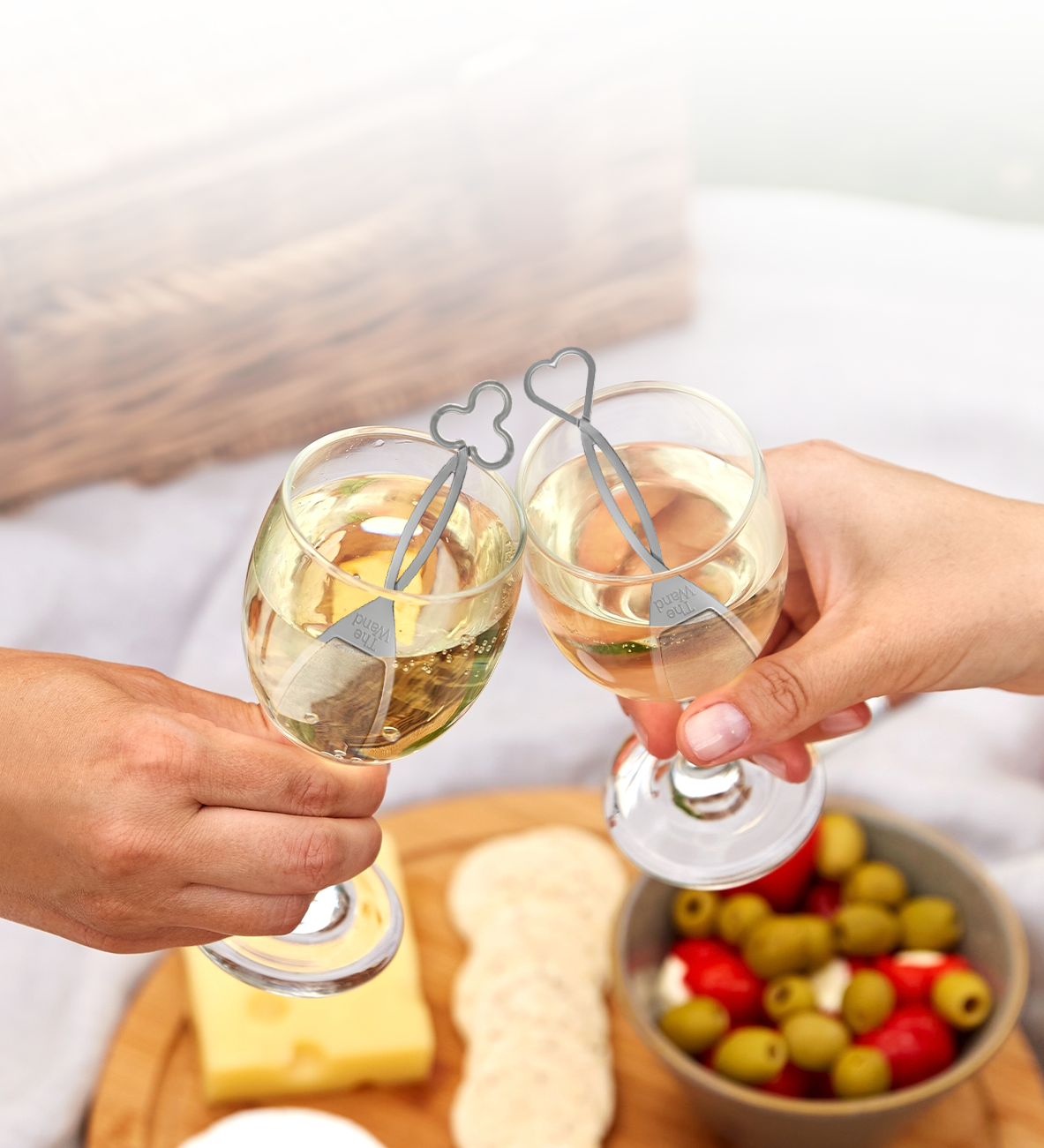 The Wand™ comes in a variety of popular colors and with four different wine charms (hearts, diamonds, clovers and wine drops). These charms can be easily twisted off the handle and attached to the rim or stem of your glass. This is an added bonus that lets you personalize your glass from all others at the party. You will never lose track of your glass of wine again, hurray!