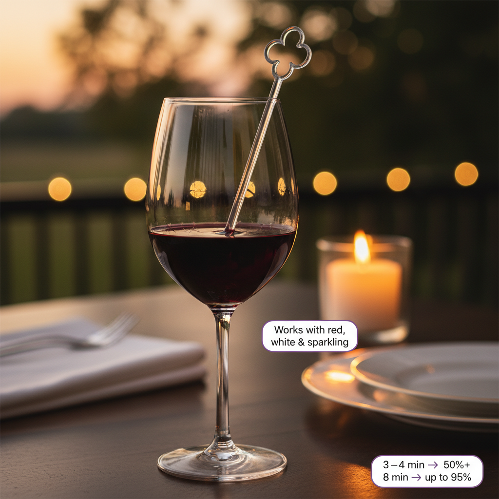 The portable Wand works in any glass—at home, restaurants, weddings, and tastings.